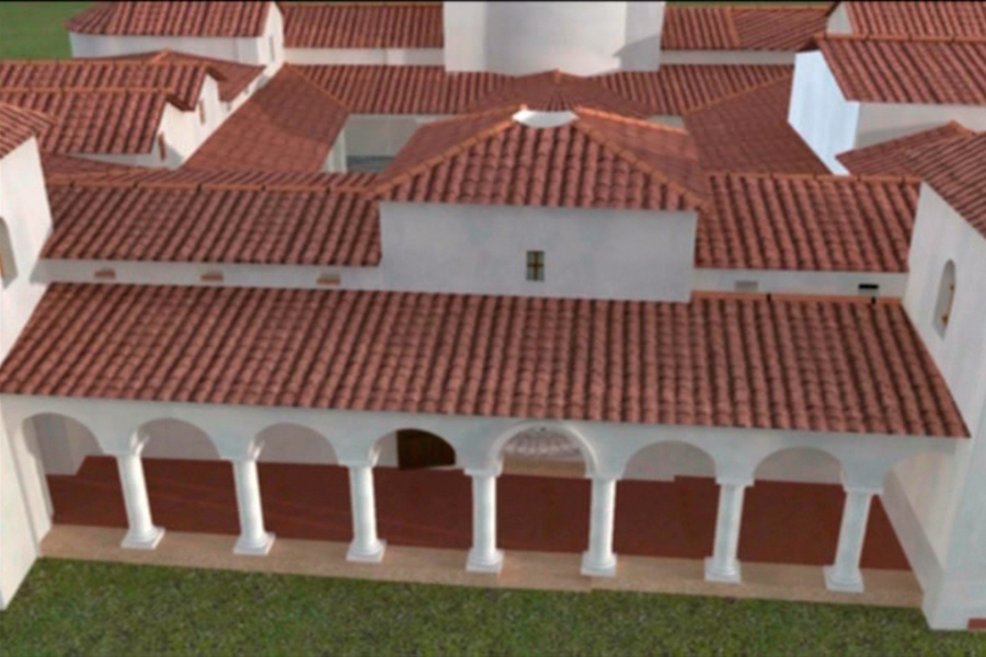 En el límite norte de la Huerta, en la parte más plana y más cercana al rio, estaban la ruinas de la iglesia de Santa María, aunque en la zona también se le llamaba el castillo de Santa María. Se creía que este muro, de unos seis metros de altura, con una ventana y parte de los muros laterales y el arranque de la bóveda, pertenecía a las ruinas de una ermita medieval. Una vez excavadas la villa y el mausoleo se procedió a excavar los alrededores de lo que se creía que fue ermita, pero resultó ser un edificio impresionante, de enormes dimensiones y, por supuesto, romano. En un primer momento y, de manera precipitada, se atribuyó a una basílica paleocristiana, conociéndose desde entonces como la Basílica. Años después, tras terminarse de excavar se cambió la versión y hoy se le denomina El Palátium.