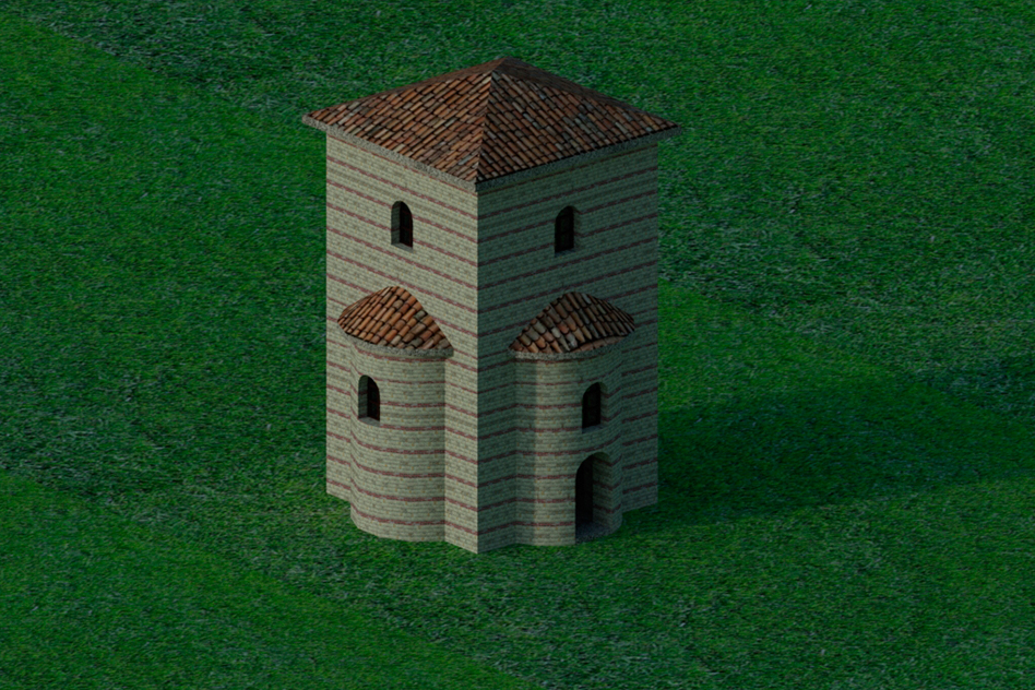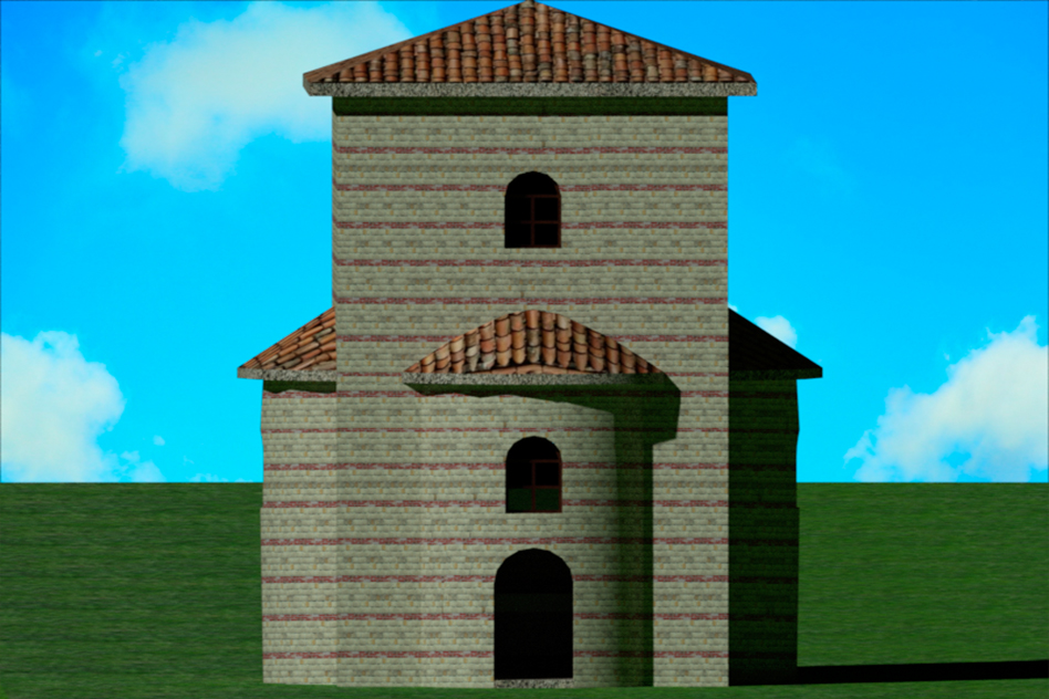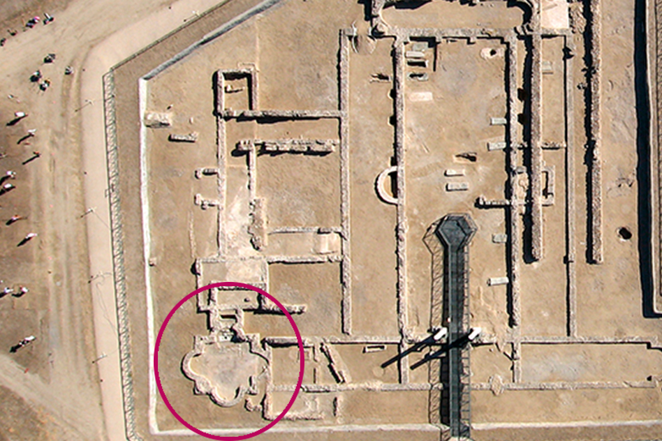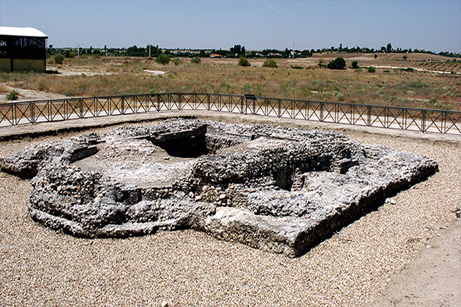 De este sencillo edificio solo ha llegado hasta nuestros días parte de la cimentación, se trata de un cimiento de hormigón de unos 5,4 x 3,7 metros en forma de U cuadrado al exterior y en forma de ábside en su interior. Se encuentra a unos cincuenta metros al este del edificio Palacial.