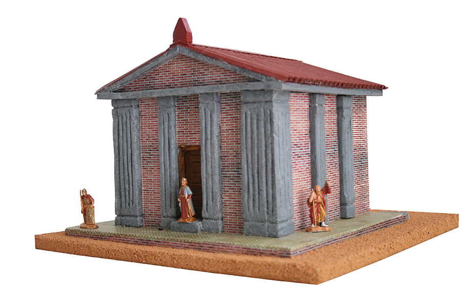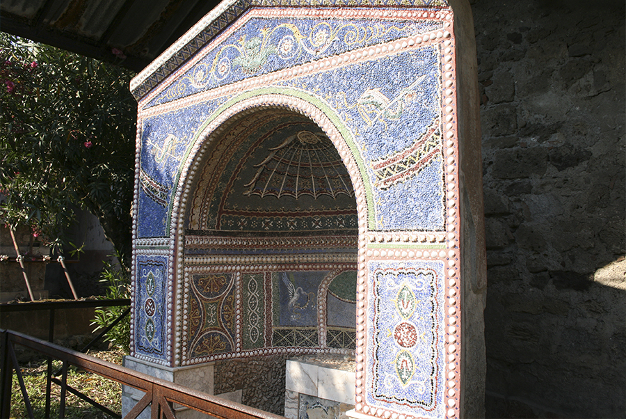 Otra hipótesis y también basándonos en edificios con planta similar en Pompeya es que fuese una fontana, como las existentes en las casas de la fontana picola y la fontana grande, pero estas fuentes son de dimensiones mucho más reducidas, por eso nos inclinamos más por la hipótesis del edificio funerario.